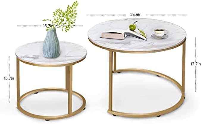 • 【COMBINE AS YOU LIKE】 Nesting white round coffee table include a large table (Φ 23.6 × 17.7 inch) and a small table (Φ 15.7 × 15.7 inch). A small table can be placed under the bigger one to save spaces . You can combine them as you like.